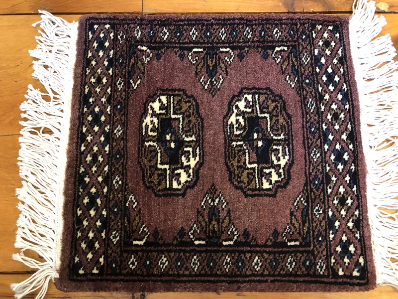These rugs have fine traditional geometric patterns on solid background colors, generally in jewel tones. They tend to have velvety, plush piles and are very pliant (almost blanket-like) in texture. They are part of a very long tradition and heritage in various parts of Pakistan such as Multan, Kashmir, Hyderabad, Lahore and surrounding areas of the northeast region.