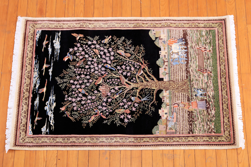• Composition: 100% wool on a cotton warp and weft. Some pieces will be crafted with a large percentage of silk knots. This will be noted on the price tag as a bundle of silk costs considerably more than the price of wool.
