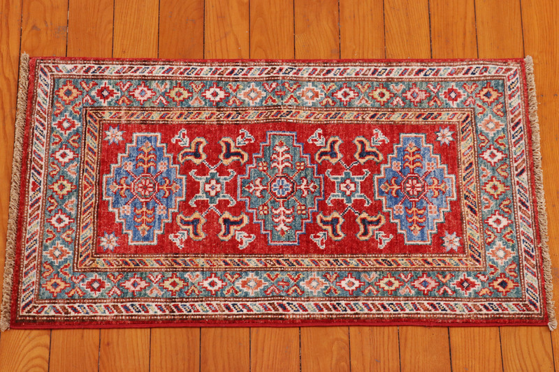 Kazaks are known for their indigo blues, reds and ivories, as well as their casual and warm appearance. Our Kazak rugs are almost entirely naturally-dyed, however, Kazak natural dyes are commercially farmed natural dyes (such as indigo and cochineal) and are therefore less labor intensive for our artisans than hand-gathered natural dyes. The reason for the phrase "almost entirely naturally-dyed" is because some artisans choose to augment their natural dyes with some commercially-available dyes in order to create the precise color they desire. The wool in Kazaks, like the wool found in Chobis and Gabbehs, is hand spun using a drop-spindle.
