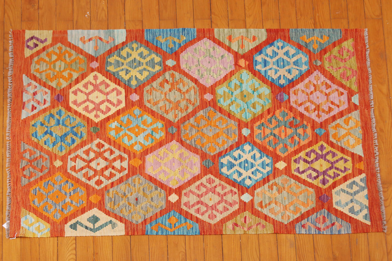 Kilims are flat weave carpets and therefore do not have a pile like the rest of our collection. Crafted primarily on vertical looms, these rugs are woven using a warp-wrapping method. Known as sumeck kilims, the rugs are virtually reversible but there is a decided right side to these kilims. Their wool is naturally dyed using both hand-gathered natural dyes and more commercially farmed natural dyes like cochineal and indigo. They also spotlight the natural wool colors coming directly from the dhumba sheep.