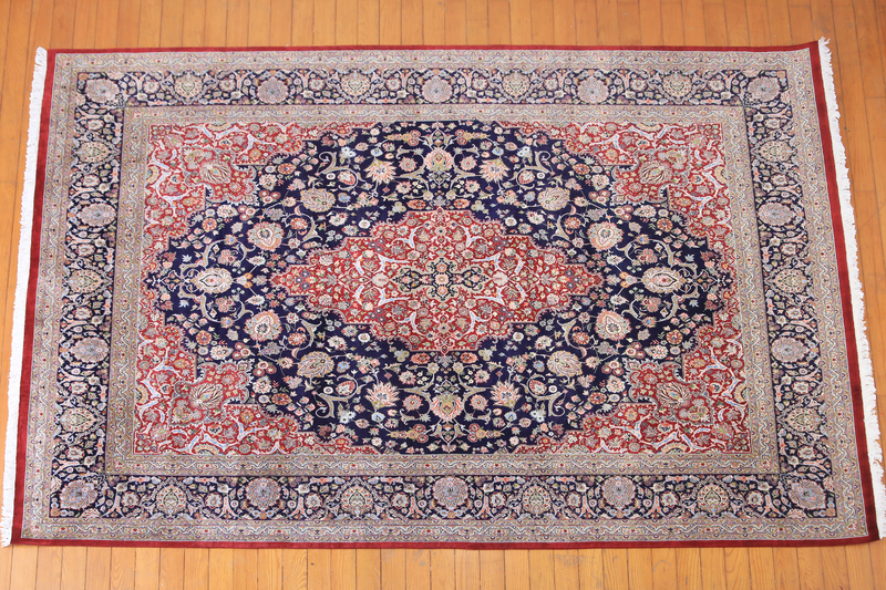 Persian rugs are known for their detailed floral designs, sometimes with a pronounced center medallion and sometimes with a repeating all over pattern. Because they are so intricate they tend to have a higher knot count. It's a bit like digital photography: if you have a very detailed image, you need more dots per square inch to show the detail. So, with a very intricate pattern on a rug, you need a lot of knots per square inch to show the design.